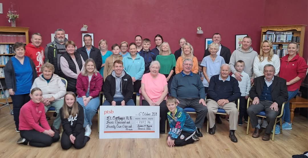 Thank you to Mary and all her weekly walkers who gave us a donation of €1500. Mary and a group of dedicated walkers donate €2 every week and go walking. They have donated to us many times and we appreciate their dedication and continued support of St Carthage's House.